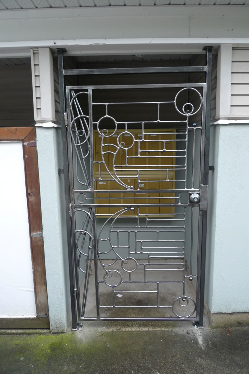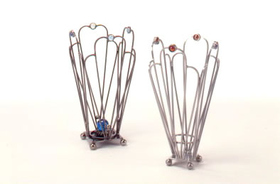 Bob Ellenton has been working under the company name of Slightly Bent Metalworks for over twenty years. From his workshop in Vancouver he creates custom window bars, railings, gates, furniture and fixtures. His tables, beds, coat racks and other furnishings are sold in galleries and shops both in Canada and the United States. He is known for his distinctive style of playful curves and the use of colourful glass balls – often with a nod to Art Deco, Art Nouveau and the Arts and Crafts movements. Whimsical or rectilinear, modern or traditional, Bob works with his residential and commercial clients to create forms that reflect their tastes and surroundings and his own design sensibility. Bob’s commercial clients include The Portland Hotel Society, Eastside Family Place, The Cultch, Mortal Coil, Dr. Vigari Gallery, Kokopelli, Subeez Cafe, Wazubee, Fets, Dan’s Home Brewing, Circling Dawn Organic Foods, The Compassion Club, EJM Construction, Readerware, City of Port Coquitlam, Fraser Dental Group, Storm Brewing, Central City Brewing, Steamworks, Bridge Brewery and Molson’s. Bob’s work has been featured in these publications: Eat.Shop.Vancouver, The Vancouver Courier, BC Home, Seattle Magazine, Vancouver Magazine, The Georgia Straight, The Vancouver Sun and the Seattle Times.